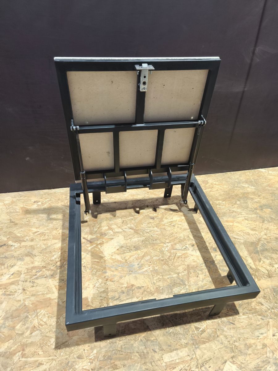 Самоподъёмный напольный люк представляет собой практичное решение для организации доступа к нижним помещениям (погреб, подвал) с возможностью маскировки проема под различные напольные покрытия.